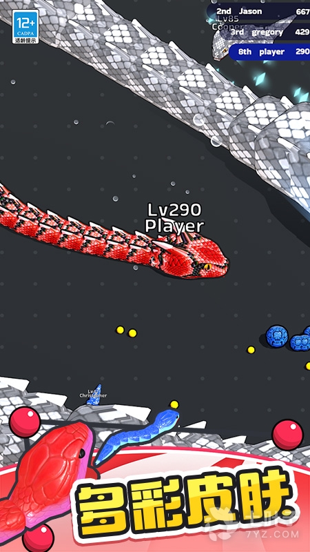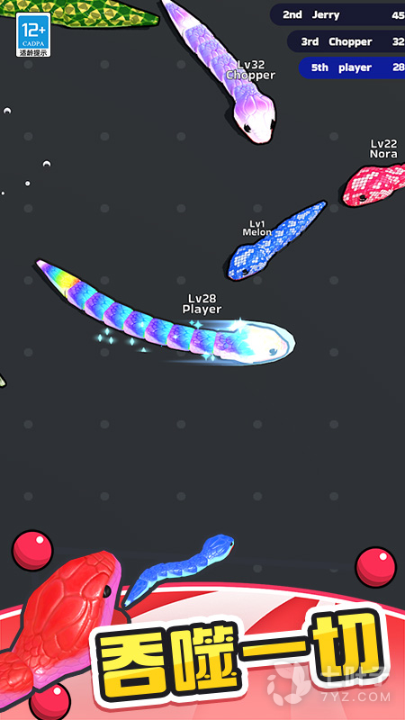6、蛇的颜色会随着蛇变大而变色,让自己的小蛇不断吞吃比自己的小的蛇,这样才能快速的成长