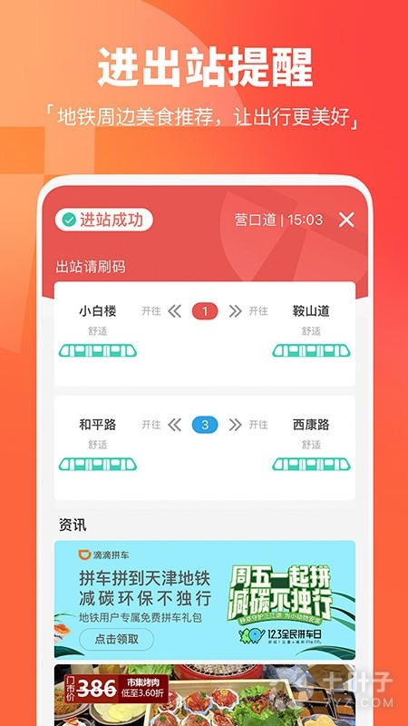 1、天津地铁最新版下载是针对天津的用户,打造的一个地铁出行神器。让你乘坐地铁,无需买票,直接手机一刷,就能快速通过闸到!改变了现代人的支付方式,不用排队买票,也无需办理公交乘车卡!直接一个手机,就能快速搞定乘车支付的问题哦