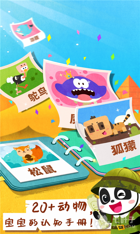 1、丰富的图鉴,展示动物外形特征完成任务,会获得贴纸奖励