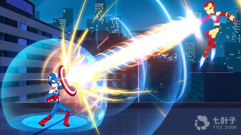 2、游戏当中玩家将会选择不同造型的火柴人进行1v1的战斗,有着多种战斗模式可以让玩家自由的进行选择,游戏的火柴人角色都是各种我们所熟悉的角色,比如钢铁侠,美国队长等等,技能都高度的还原