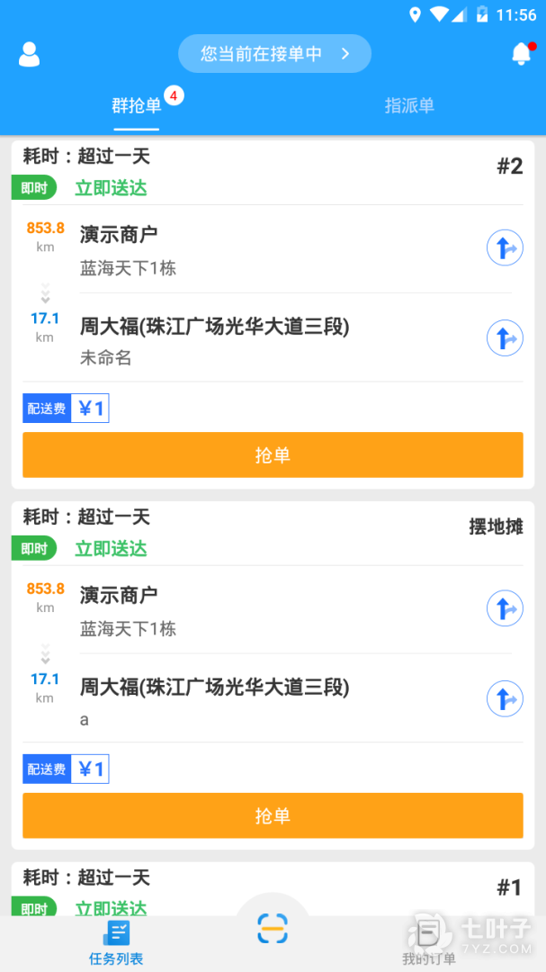 1.接单、抢单版块新增了扫码收单,加入的抢单群、收到的指派单;