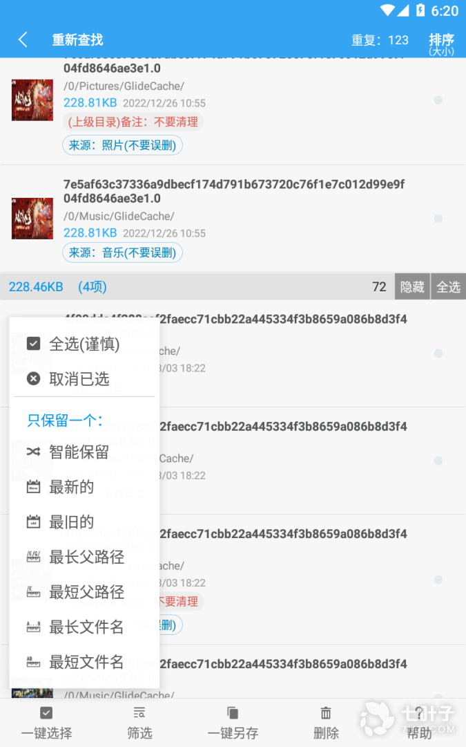 3、一键清理空文件夹、APK安装文件、缓存文件。