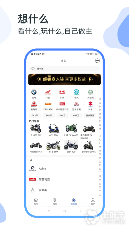 2、更多想要尝试的摩托车可以用租代替买卖的应用;
