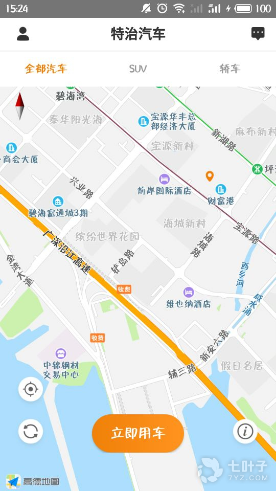 2、用户可以打开app一键租车,并获取附近车辆的位置和详情信息!并且特治共享汽车提供的都是奢华型轿车!app还自带地图及导航功能