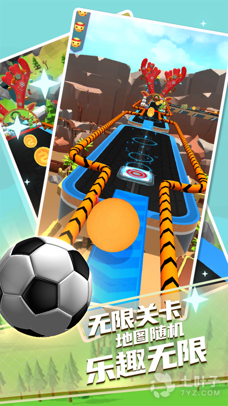 2、指尖球球是一个非常有趣的手机球球类型的休闲竞速小游戏。在游戏中玩家通过手指去操控小球的移动位置,游戏赛道呈现出弯弯曲曲的,玩家需要保护好小球不要掉下去,并以最快速度冲过终点