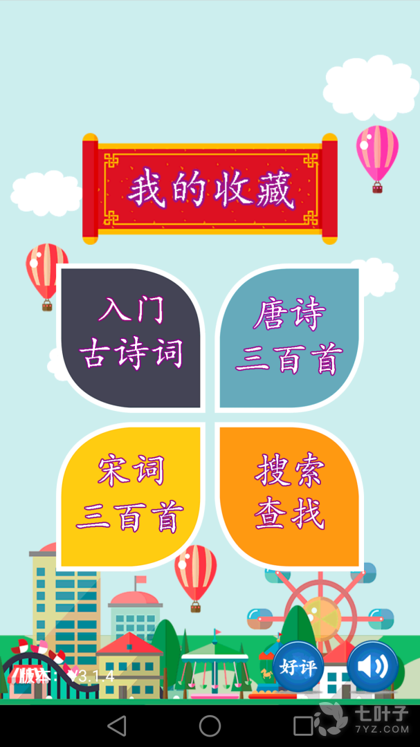 古诗词,大多数的古诗词,文言文,词赋大全,是考试复习的好帮手。诗词还按不同类形作了分类,方便查阅与阅读。每首诗词都有详细的解释,翻译,背景,阅读时能快速进入诗境。