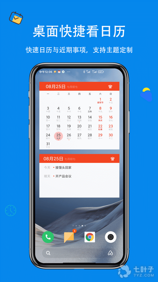 2、方便的手势操作:首创滑动操作实现日历的周视图和月视图之间切换,滑动屏幕查看日程、天气等内容,灵活自如。