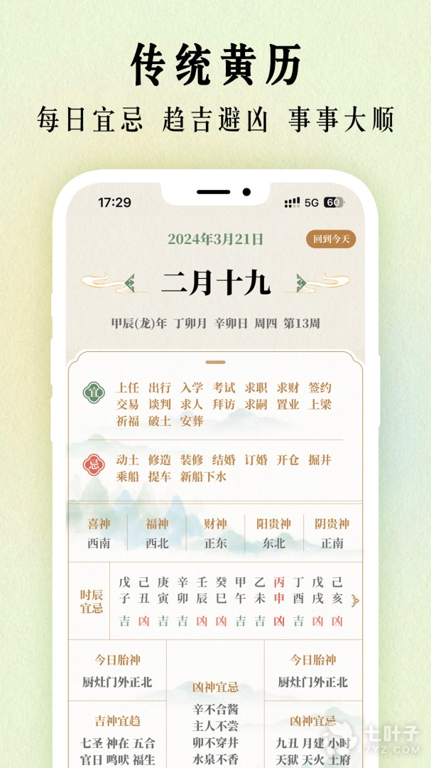 1、幸福万年历这个软件里包含了各种日历app的作用,它有老黄历,每一天的宜忌之事记录的清清楚楚,十分好用,还是专业的日历,里面包含了节假日的放假天数,调休的时间等等,里面甚至还有十二星座相关的东西,有了这一款软件,用户就不再需要其他的日历软件了
