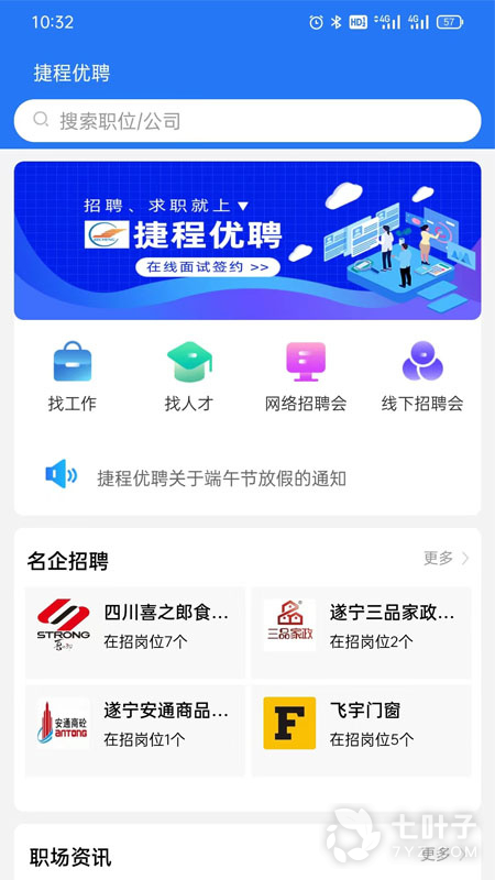 2、捷程优聘安卓app,遂宁本地在线招聘服务平台,提供大量工作机会,汇聚海量人才,轻松匹配合适工作,帮助求职者快速找到合适职位,为当地人带来更高效的求职招聘服务