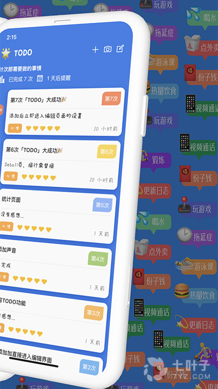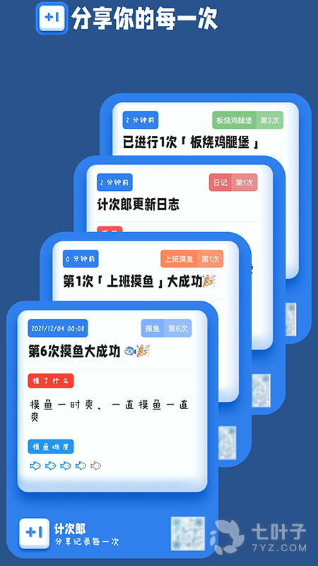 5、每次计次均可记录当时的心情、图片,生成卡片分享给别人