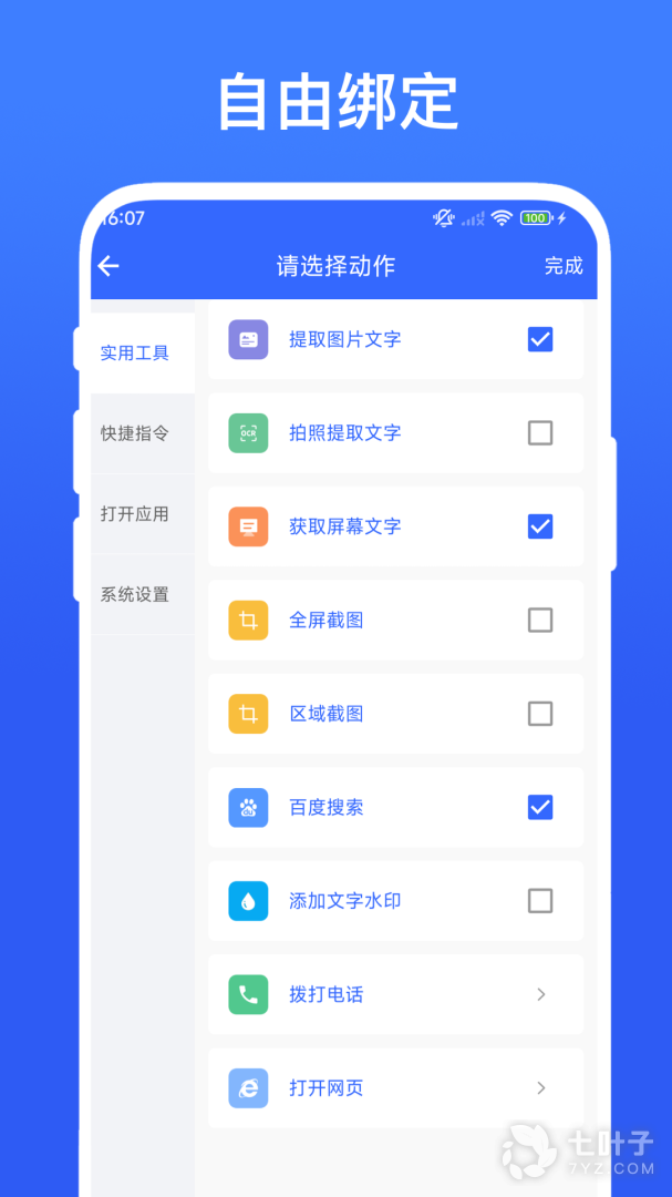 1、自定义菜单,常用操作/打开APP/快捷方式均可选择