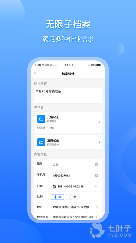 1、该软件能使用各种档案模板,快速录入需要的资料,让自己更加的高效,同时减少错误率,全部录入完成以后,还可以在手机上面轻松管理这些档案哦