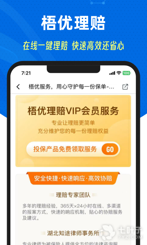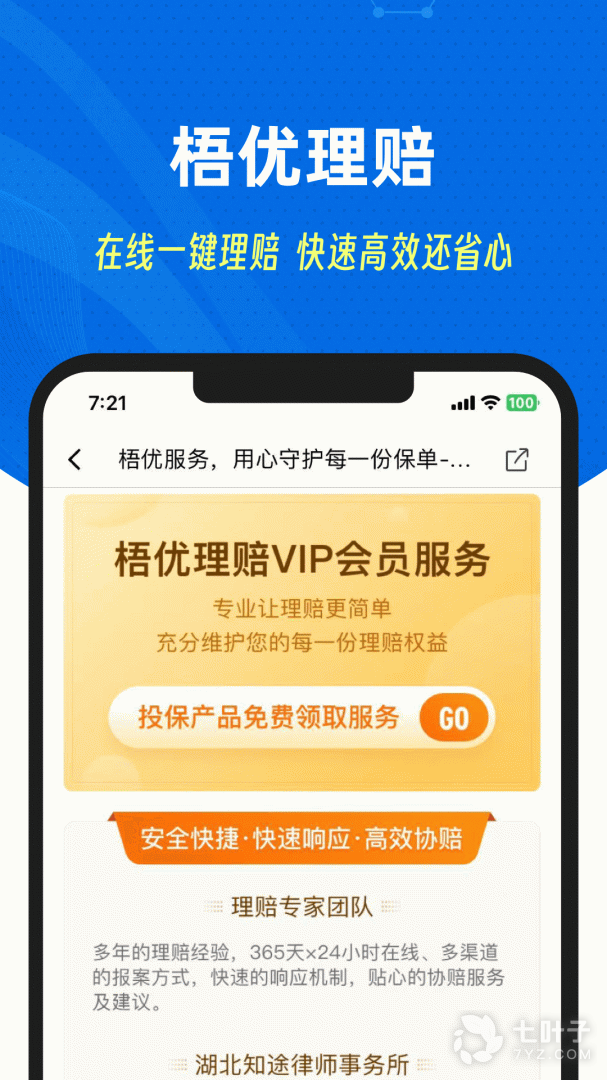 当发生保险事故时,为用户提供7×24小时协赔服务,由专业协赔专员全程跟进、指导,直至案件完成。