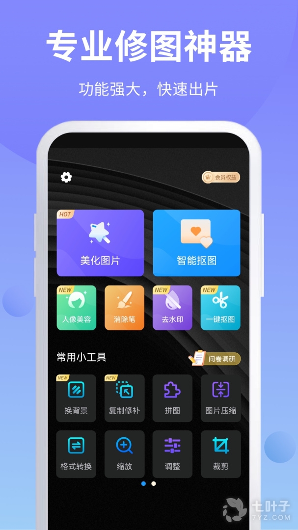 ps修图专为爱玩图的你准备的ps美图软件,让你爱上天天ps修图,轻松成为ps修图大师。有了ps修图这款修图软件,不管你是玩自拍还是证件照,都能快速美化照片实现图片人像合成,轻松修图换背景。