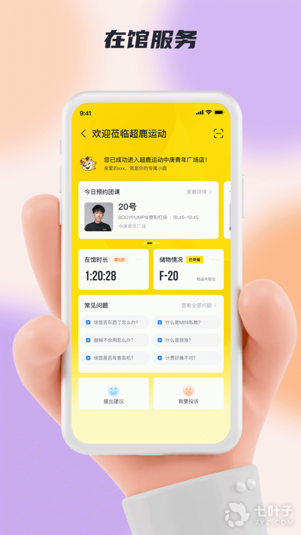 专门的健身场馆可供运动,进馆后智能匹配专属教练,为你提供贴心的随身指导,指正使用器材时的错误操作。