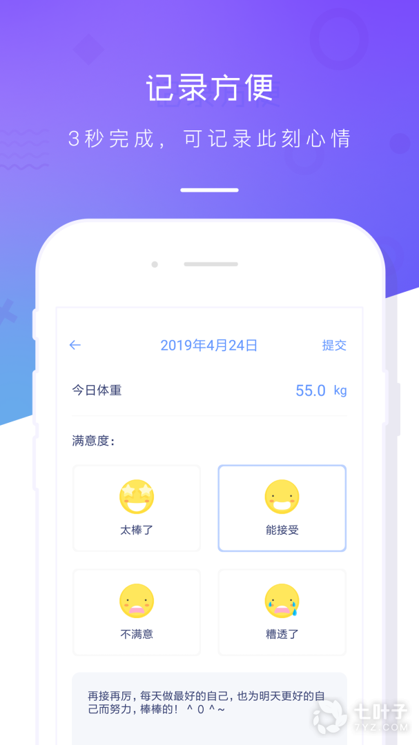 3、体重记录本是款专门记录体重的应用软件,在体重记录本上,你可以记录自己的体重数据,更明确的知道自己的减肥效果,体重记录本软件,用数据告诉你减肥效果