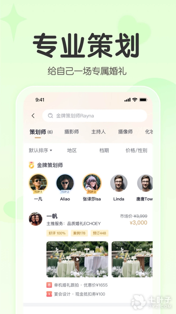 1、位优秀婚礼策划师,一对一精心定制专属的婚礼方案,满足您的任何需求,拒绝套餐婚礼,让您享受不一样的婚礼,刷爆朋友圈