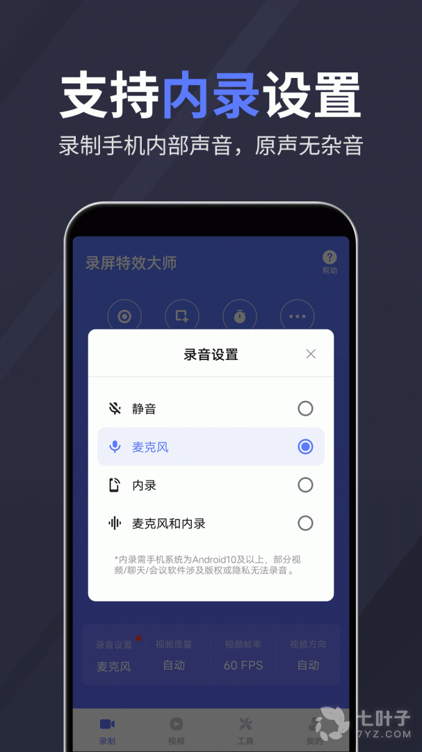 内录功能只支持安卓10及以上版本;