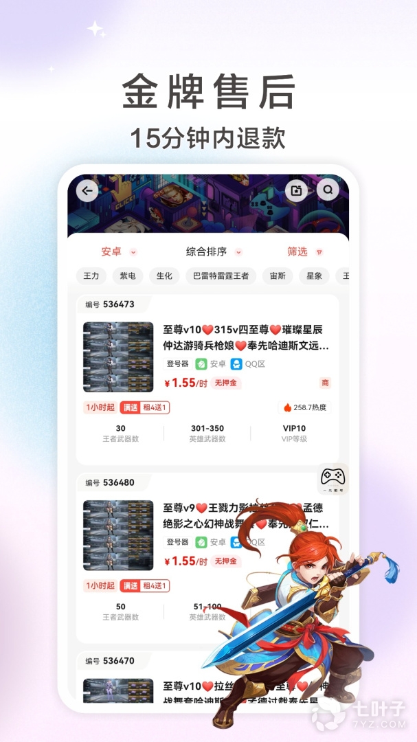 2、用户可以在这款软件上进行租借账号,和朋友开黑没有账号时即可在平台上一键租借,平台有海量的游戏账号和视频会员,各种游戏账号多款皮肤装备任你选,24小时客服贴心服务