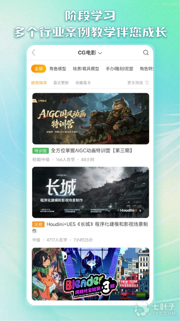 3、涉及到丰富的设计领域,其中包括工业设计、CG电影以及动画制作等多种不同的领域。这里的课程被划分成了初级入门类、中级进阶类以及高端应用。支持学习多种软件使用方法,平台为用户提供了CDR、AE、CAD以及UE4等多种学习课程