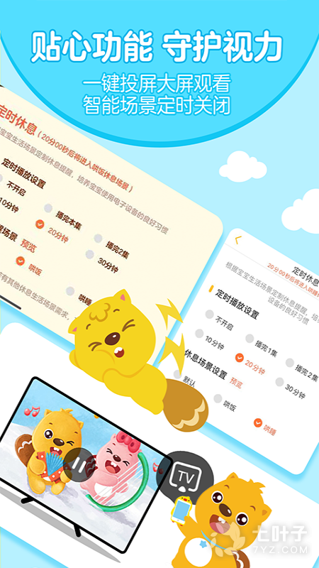 1、科学早教儿歌及故事内容精挑细选,健康向上;孩子在儿歌学唱和观看过程中,有可爱的动画人物做出积极引导,帮助孩子树立快乐和健康的状态;开启0-6岁儿童智力快速发展,儿歌动作效仿能帮助孩子活动四肢,整体协调能力显著提升