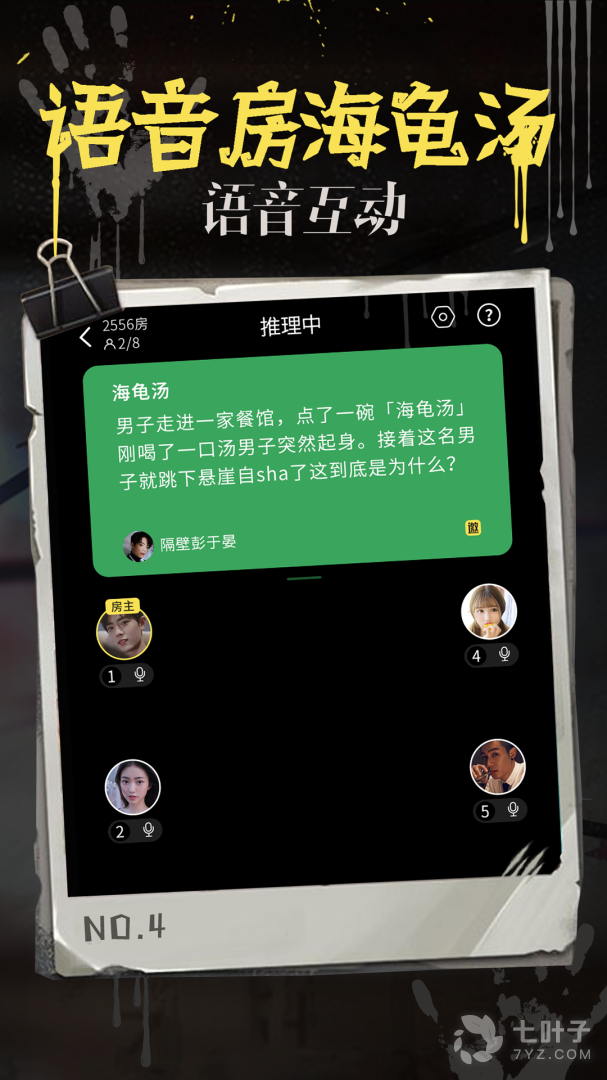 3、现在社交推理类的游戏非常火爆,想要加入游戏的话快来下载这款非常好用的海龟汤APP吧,软件中有非常多的剧本提供给大家,用户可以根据自己的喜好来进行挑选,可以线上匹配其他的用户,也可以在线下聚会的时候一起玩,剧情新颖有趣,在玩的过程中也很刺激