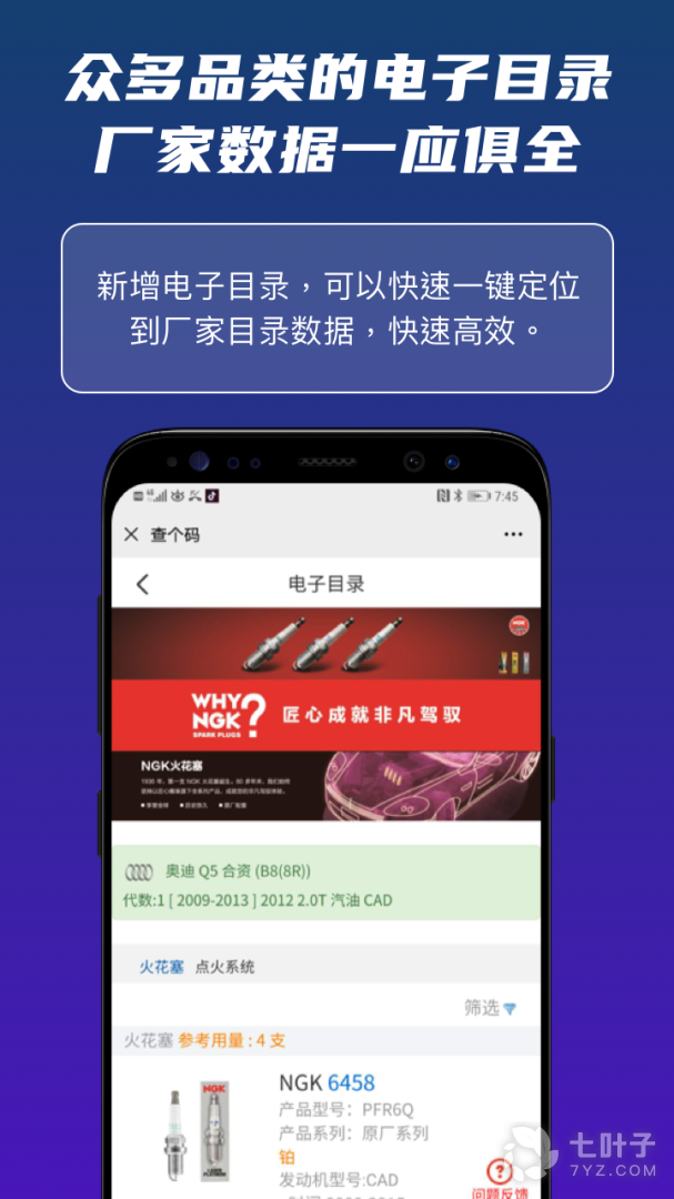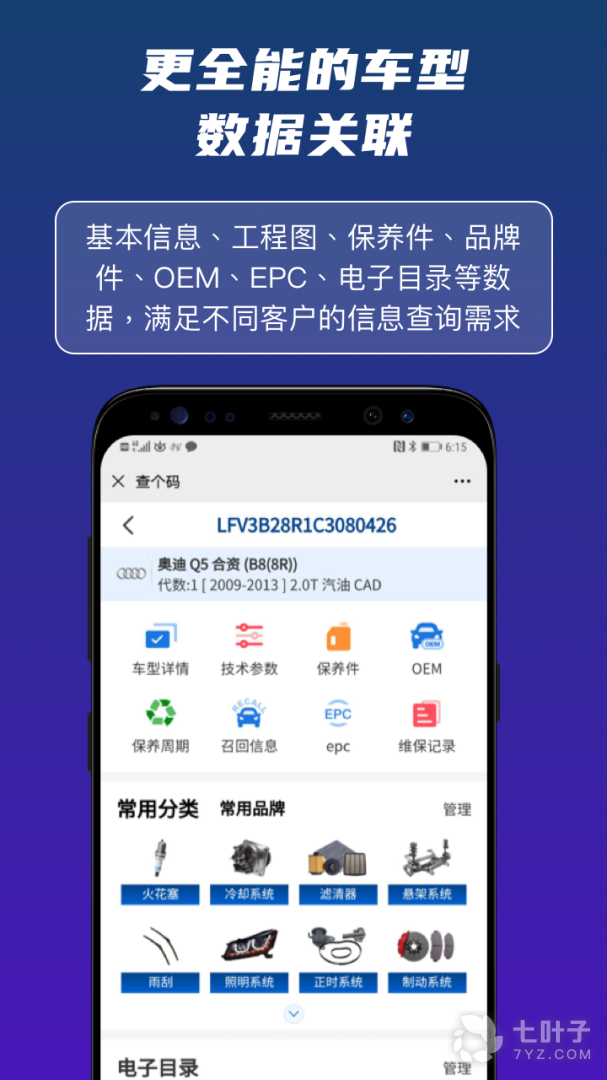 4、通过快速的VIN码识别可以查询保养建议、油品数据、易损件数据、OE数据
