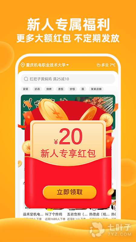1、橙子校园app是一个校园o2o综合生活服务平台,橙子校园app提供校园外卖、在线超市、快递代取等服务,为学子提供便捷的校园生活服务
