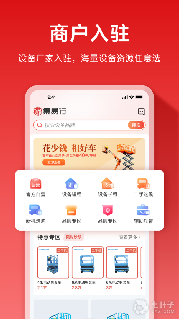4、集易行下载,一款专业高效的高空作业车一站式电商平台,来集易行用户可以随时在线下单租设备,更加方便快捷,还支持订单数据实时同步,有需要就来下载