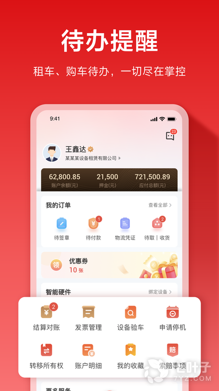 2、集易行是专为用户提供施工建材、高空作业等设备租赁的软件,通过软件可以查询到所需的设备,一键租赁,自助下单,在线签单,实时掌握订单动态,进行设备管理,还有待办事项,提醒用户取车换车,帮助用户轻松租到设备,加快施工作业效率