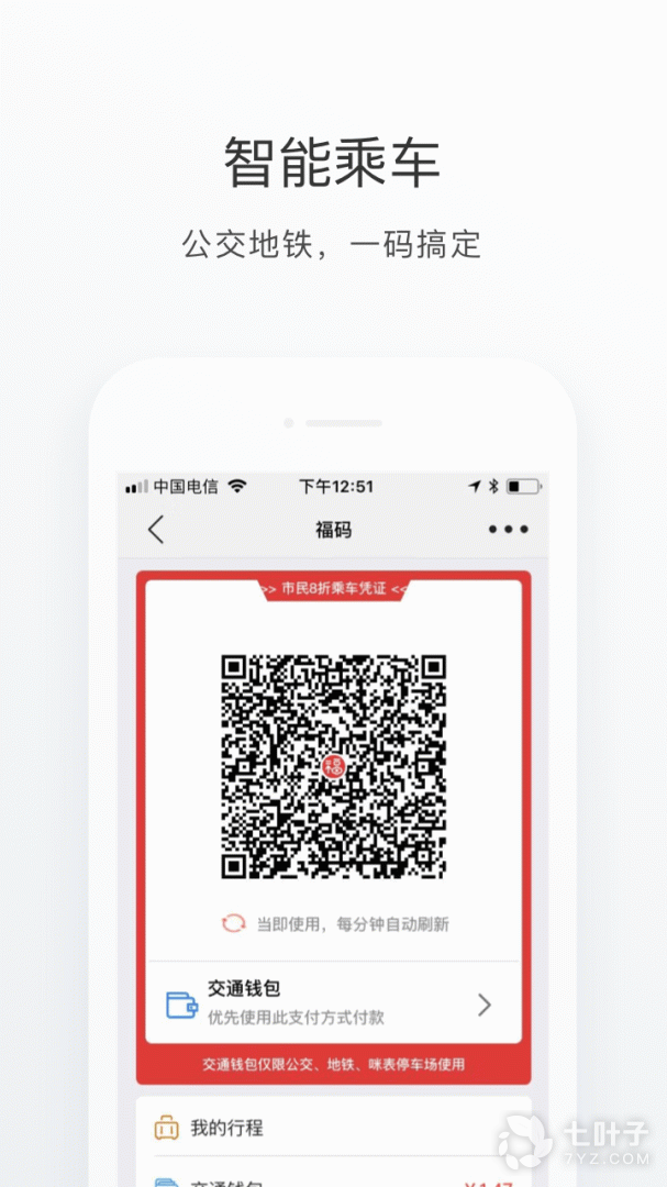 1、乘车码都是当即使用的,每分钟都能自动地去进行刷新