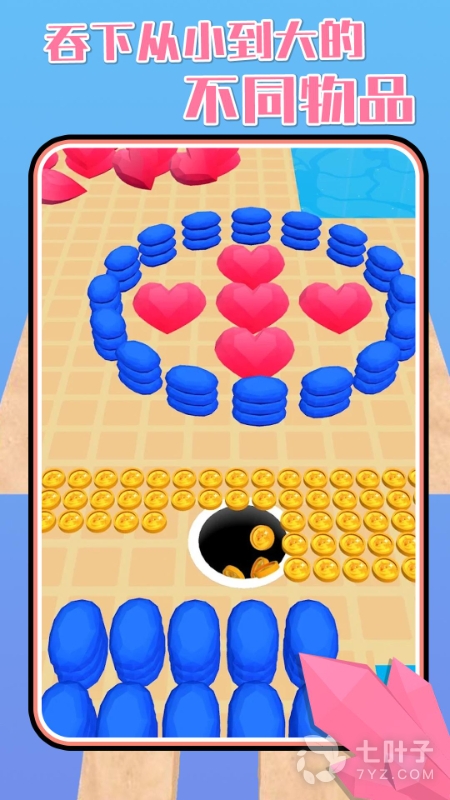 1、它采用了卡通的风格设计,将整个的游戏画面显得十分鲜艳明亮,玩家在游戏中需要去控制黑洞来吞噬一切能够吞噬的物体,在不断地吞噬中,黑洞的直径也会变得越来越大,玩起来非常解压,简单的游戏操作也能让玩家们快速上手