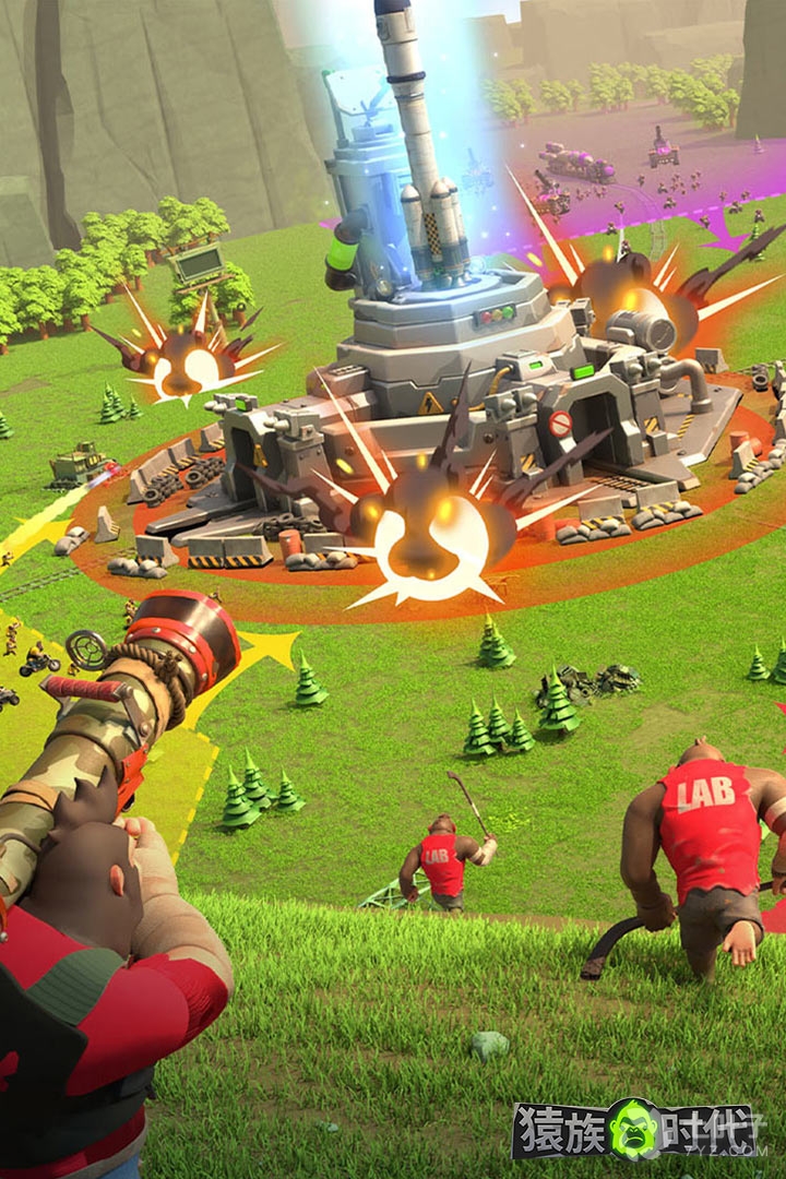 2、游戏中玩家将控制不同的猩猩来发展地球,解锁全新建造玩法,打造不同的设施,探索全新地图,多种猩猩等你解锁,游戏的画风十分精美,打造全新基地,感受热血刺激的对战玩法