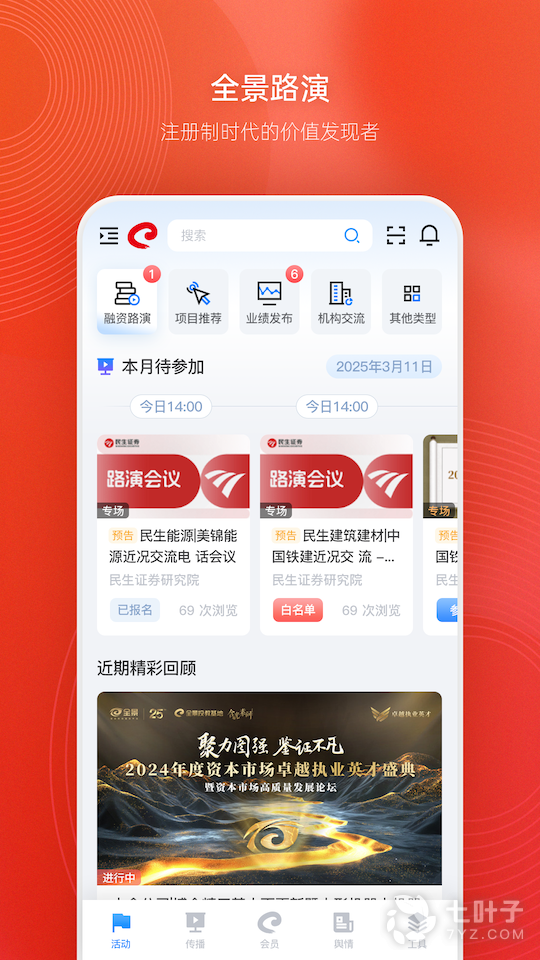2、全景路演,是注册制时代下,由网上路演开创者全最倾力打造的一款价值投资必备工具