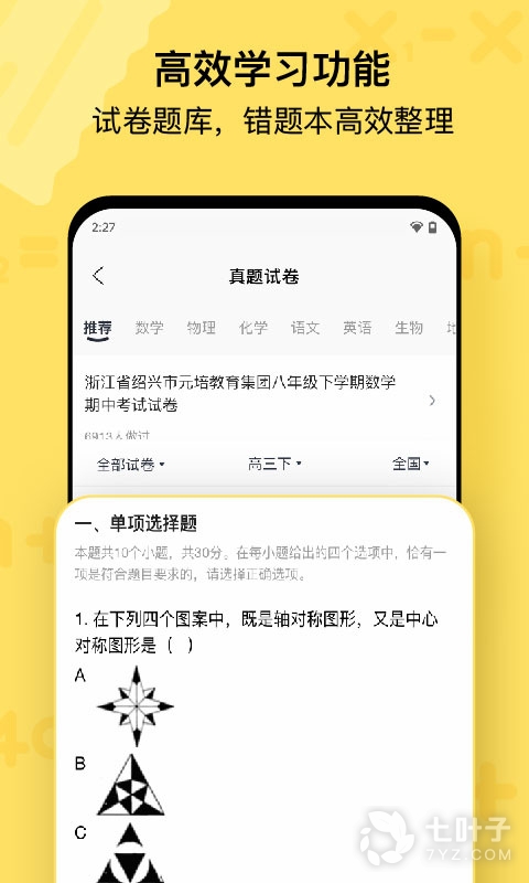 真实试卷:家庭作业帮助一个庞大的试卷库智能筛选并准确匹配所有年级的试卷。