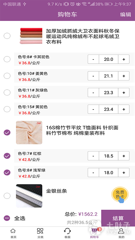 3、这款软件专门卖面料,各种面料都有,各种颜色花纹随你挑选,让你在这里体验全新的购物方式,平台内的商品类型多,大家可以在这里轻松的购物,欢迎各位下载使用这款软件