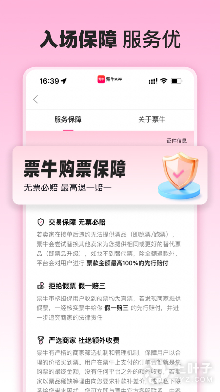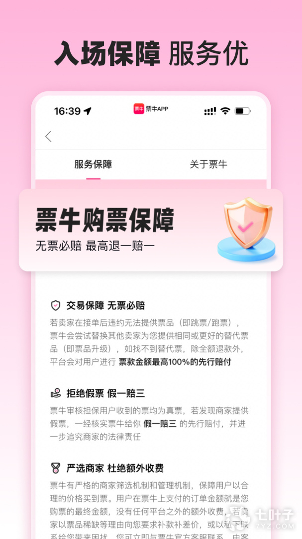 所有在票牛购票的用户,如若在收货后发现票品的品质与描述不符,且与卖家协商未果,即可申请票牛平台介入;票牛会根据票品的检验结果进行判定,如判定买家申请成立,则由平台向买家用户先行赔付。