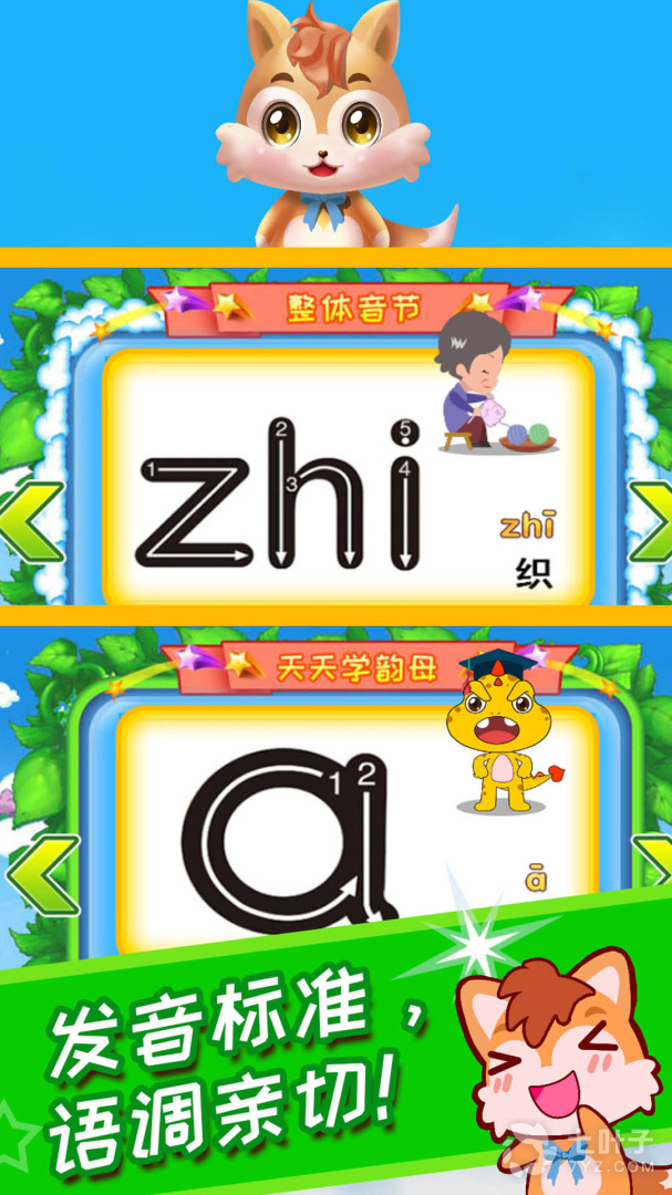 专为低龄儿童打造,游戏方式轻松简单,帮助孩子通过拼音游戏轻松掌握声母、韵母和音节,结合动画让孩子加深记忆,最终通过拼音钓鱼来测试孩子学习情况,便捷有效,快来为孩子下载吧