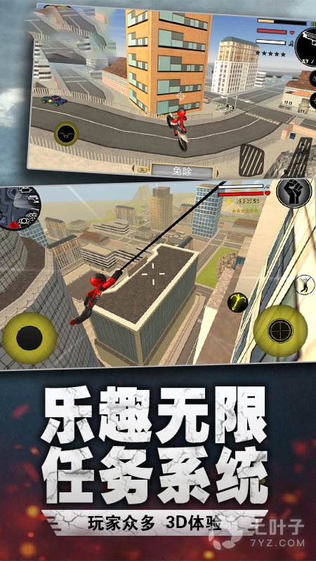 1、在城市中惩奸除恶的游戏,其实这类绳索英雄系列的游戏挺多的,但蜘蛛侠作为主角的,无疑是最受玩家欢迎的哦。飞机坦克畅快驾驶,城市自由穿梭,火力全开守卫都市哦