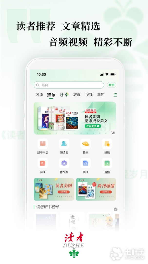 2、数字读者每天精心挑选出历年期刊菁华以及部分从未见诸于读者杂志的全新内容推送至用户手机,每个清晨从聆听和阅读数字读者开始