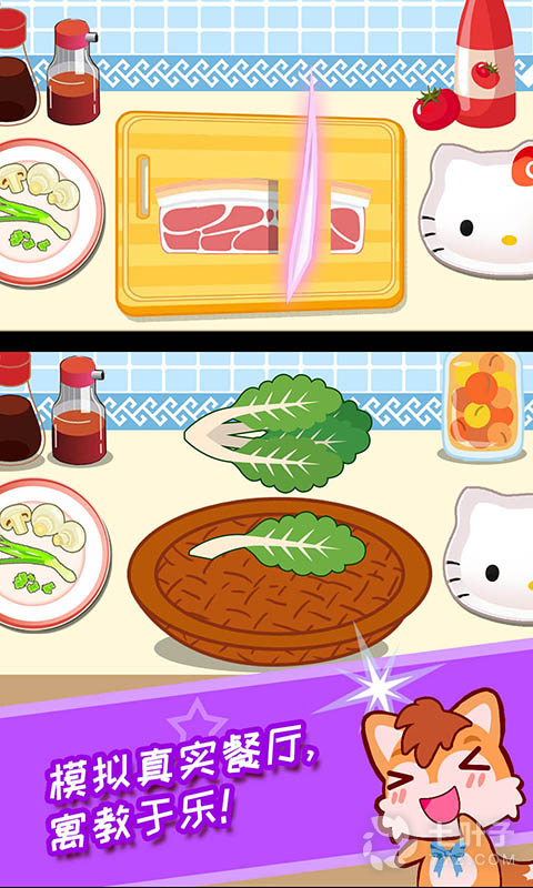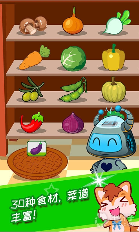 3、在这里你可以经营一家炫酷的机器人餐厅,游戏有着精致的卡通风格画面,孩子们可以在这里学习到丰富的菜品制作过程以及所需要用到的食材调料等。游戏中还有丰富的厨具提供给你使用,让孩子可以爱上做菜哦!感兴趣的家长不妨来下载看看吧