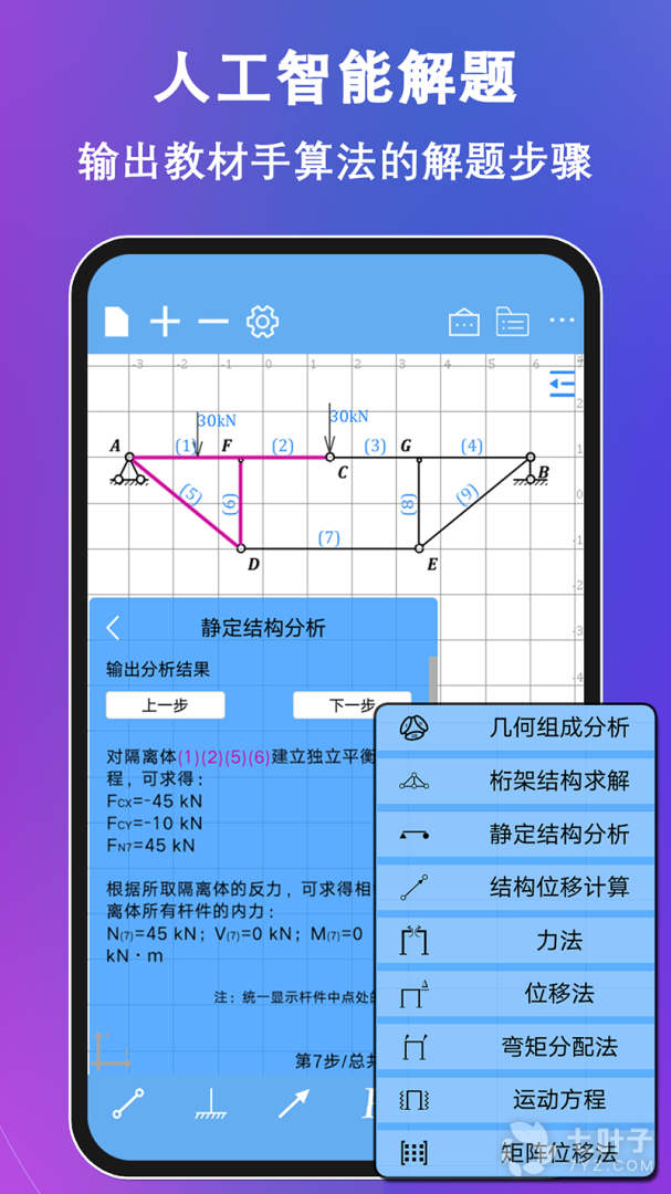 3、全球独家的智能模块,支持输出结构力学教材上所有方法(位移法、力法…)的解题步骤,至于它的真实用途,你懂的
