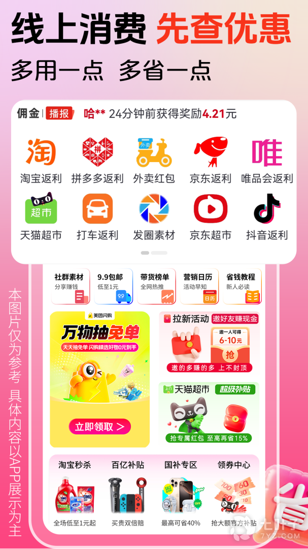 3、该软件内的资源十分丰富,软件内还有非常多的优惠活动和购物券,用户可以在软件内以心仪的价钱买到自己想要的产品,非常的方便快捷