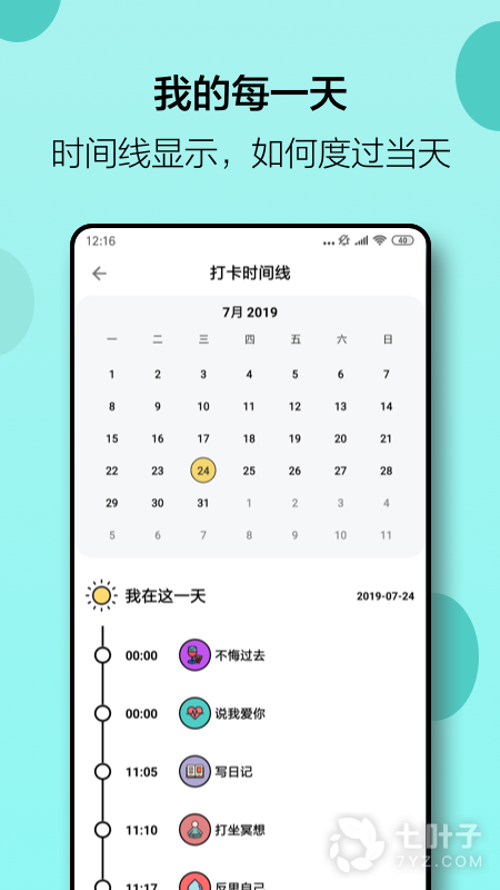 4、小日常包含了很多管理日常生活的功能,软件内可以记录每一天的日程和进行下一天日常的计划。软件界面清新简洁,整体是马卡龙的配色,非常适合女生进行时间上的管理。软件内可以设置每日必做的事情,完成之后可以在软件内打卡,晚上翻阅软件也会很有成就感