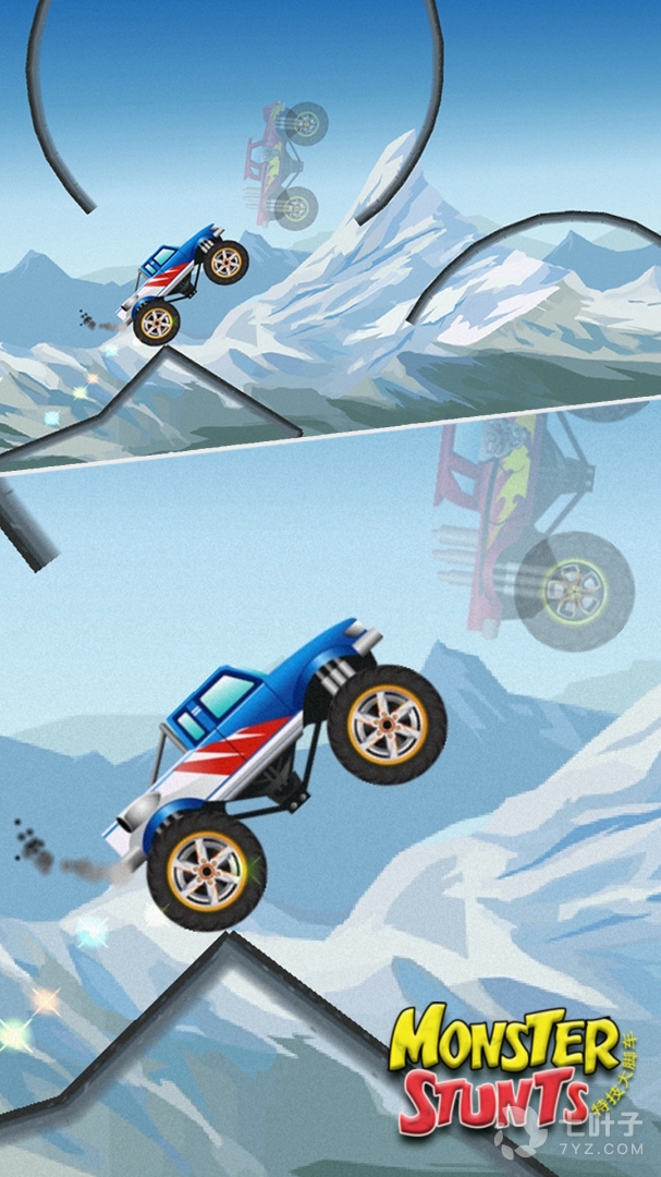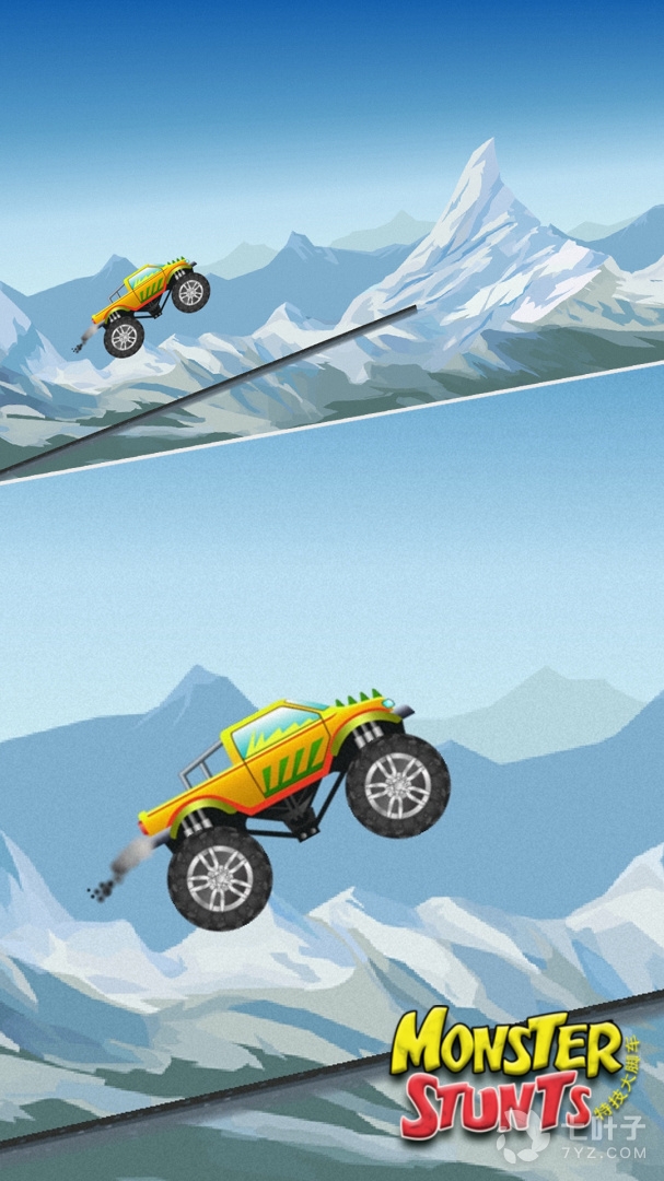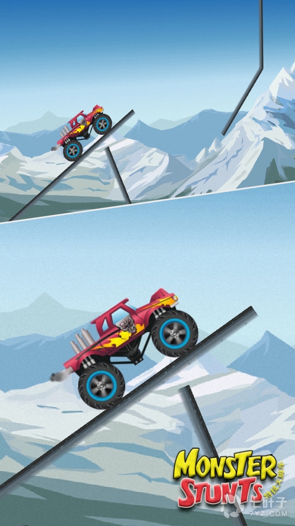 3、游戏中你将控制你的爱车,在各种困难的地图里面,完成顺利通行,安全的到达终点即为通关!丰富的游戏关卡设计,两种操作模式,惊心动魄的特技之旅由此产生