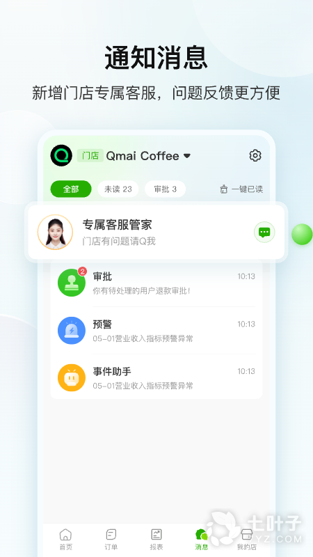 3、订单管理:到账极速播报,外卖自动接单,支持微信/支付宝小程序订单,买单/预约单一目了然,快速处理订单