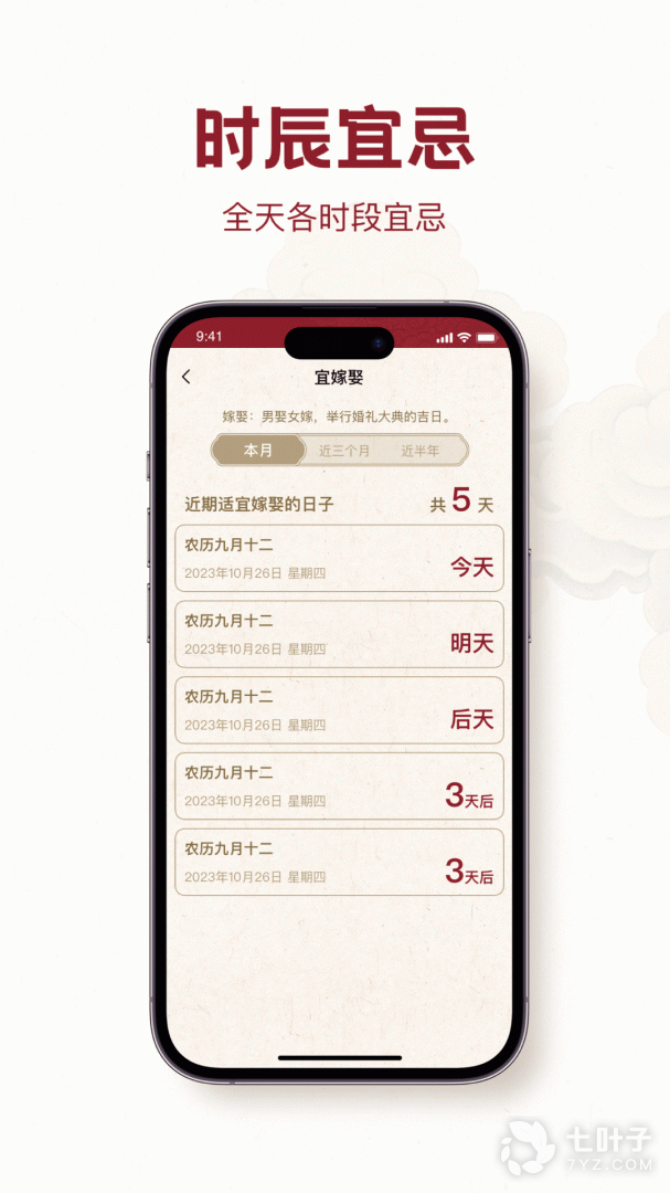 2、时轮算明分享给大家,占用内存超小的万年历应用,内置阴历以及阳历,用户可以根据需求进行设定,还能快速查看每日吉凶、时辰宜忌等信息,时轮算明日历帮你轻松找到好运日