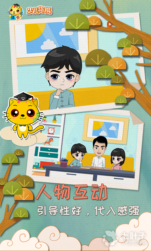 1、教学内容采用人物互动方式来展开,生活化的对话结合动画的表达形式,亲切自然,使得抽象枯燥的知识润物细无声的被孩子不知不觉就接受和了解,让孩子主动思考的同时又对后面的学习充满好奇,时刻保证孩子的学习兴趣