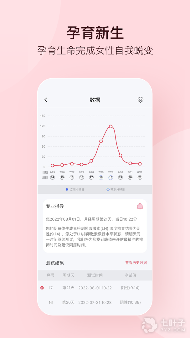 ·数据功能:自动绘制每个周期的指标曲线,快速定位峰值,准确判断排卵时间。
