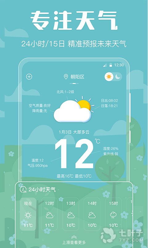 3、天气分享,天气是一款天气预报查询软件,天气预报数据实时更新,随时随地了解最新的天气状况,出行更便捷,欢迎下载使用~